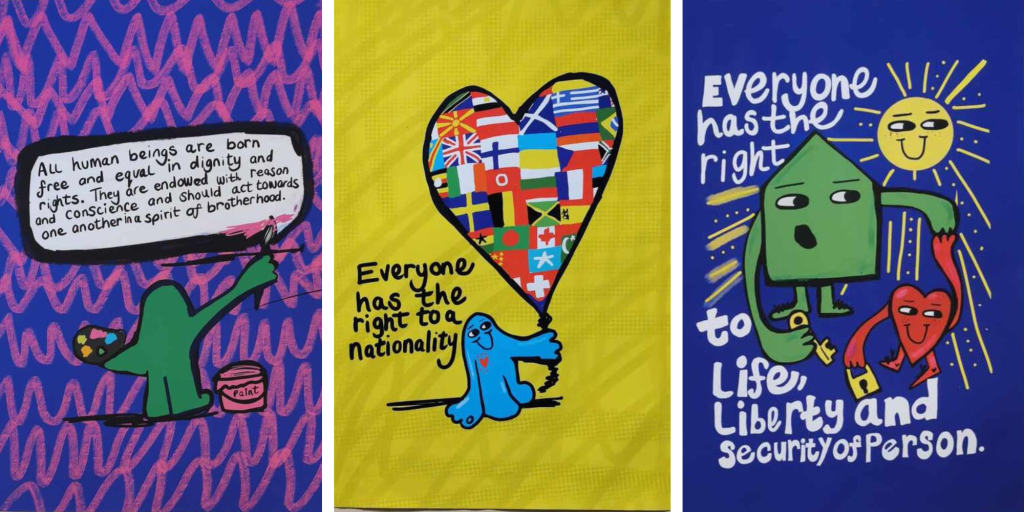 Emma Evans is the powerful ‘voice’ behind the illustrations that captured my eye. Talking with her was yet another light that began to shine in the hope for a more secure future for human rights, not only had Emma produced these illustrations and had them displayed at the event, but these pieces were each inspired by the articles of the Universal Declaration.
